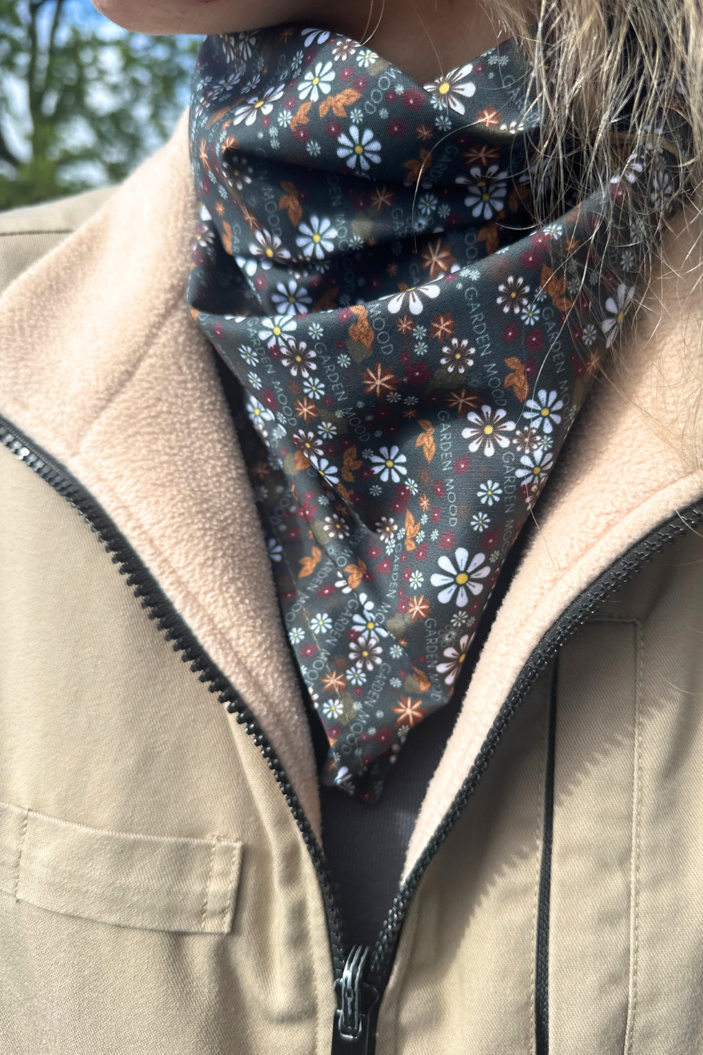 Looking to add a floral accent to your hair or neck? This flower-patterned scarf is a charming accessory for city outings and a practical shield from the sun while working in the garden. It also makes a lovely symbolic gift for any plant or flower lover.