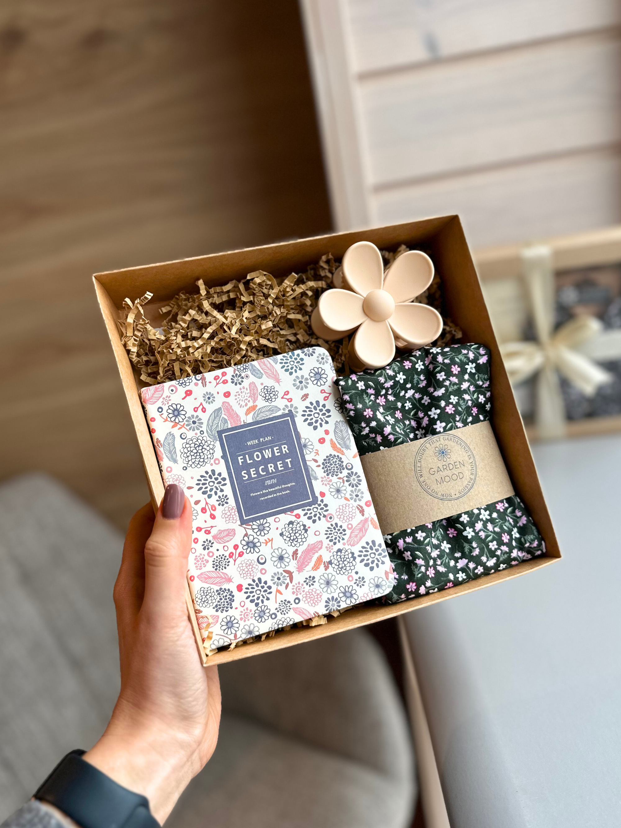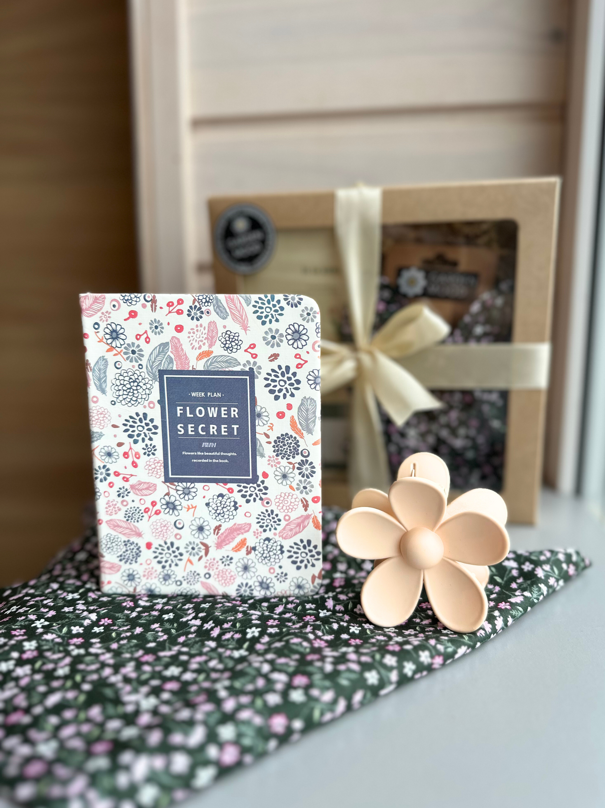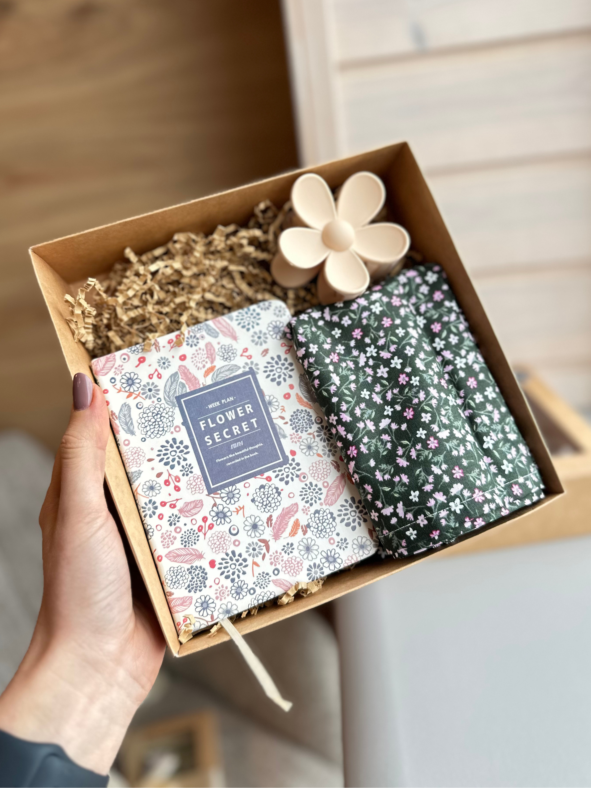 The perfect set for a woman who adores flowers, likes to dress up and has a hobby of writing. Packed and ready to give as a gift 🎁