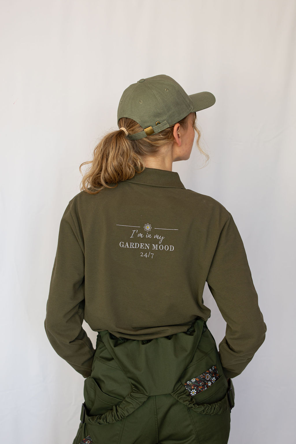 Long-sleeve t-shirt with embroidered inscription “I’m in my Garden Mood 24/7” – because the love for plants lasts every single day.